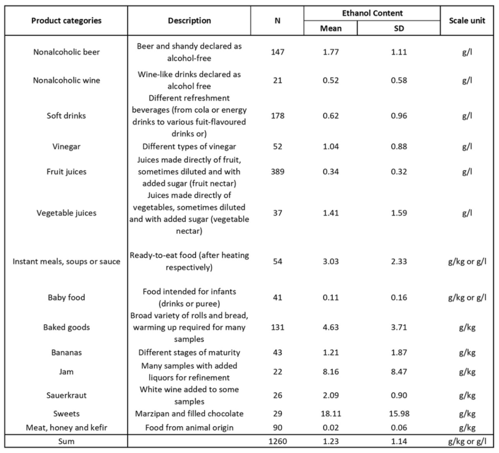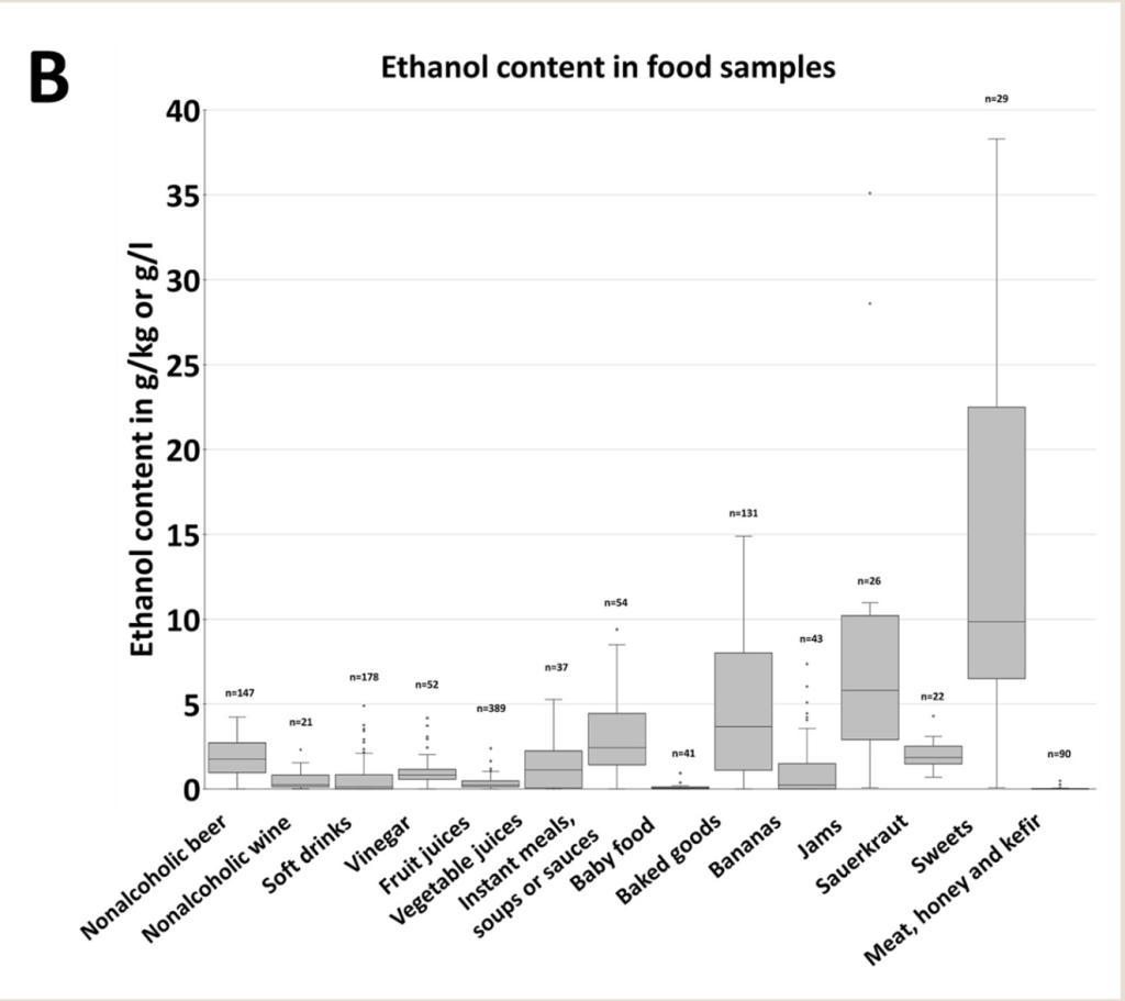 2. Egy másik kutatásban szintén elemezték a termékeket. PMID: 36724847. Itt bébiételek is megjelentek. Érdekes, hogy ezeknek sem nulla volt az ethanol (etil-alkohol) tartalma.